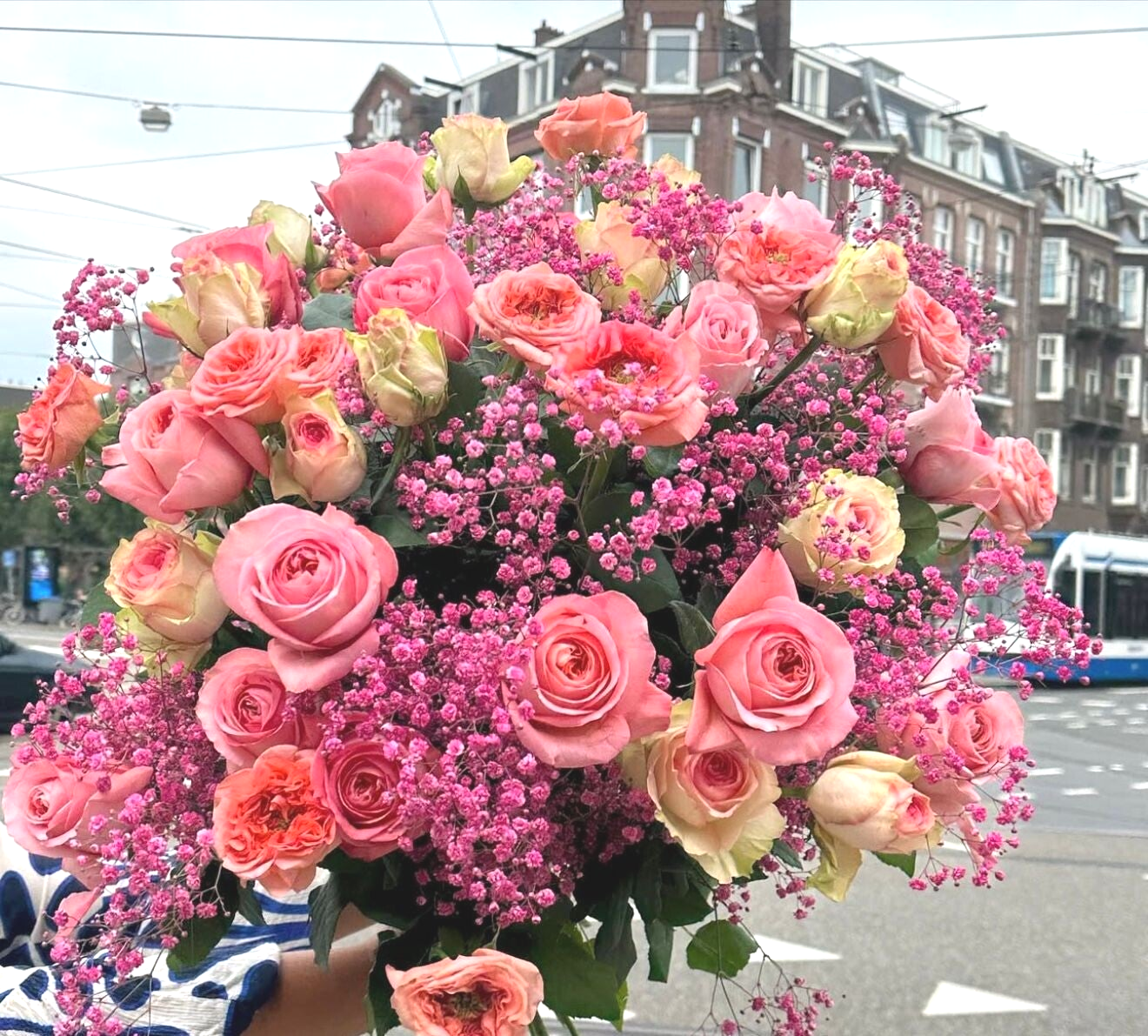 NL: Getoond wordt het regular boeket. Een weelderige mix van seizoensbloemen. Foto is een voorbeeld, uw boeket kan hiervan afwijken ivm het seizoen.